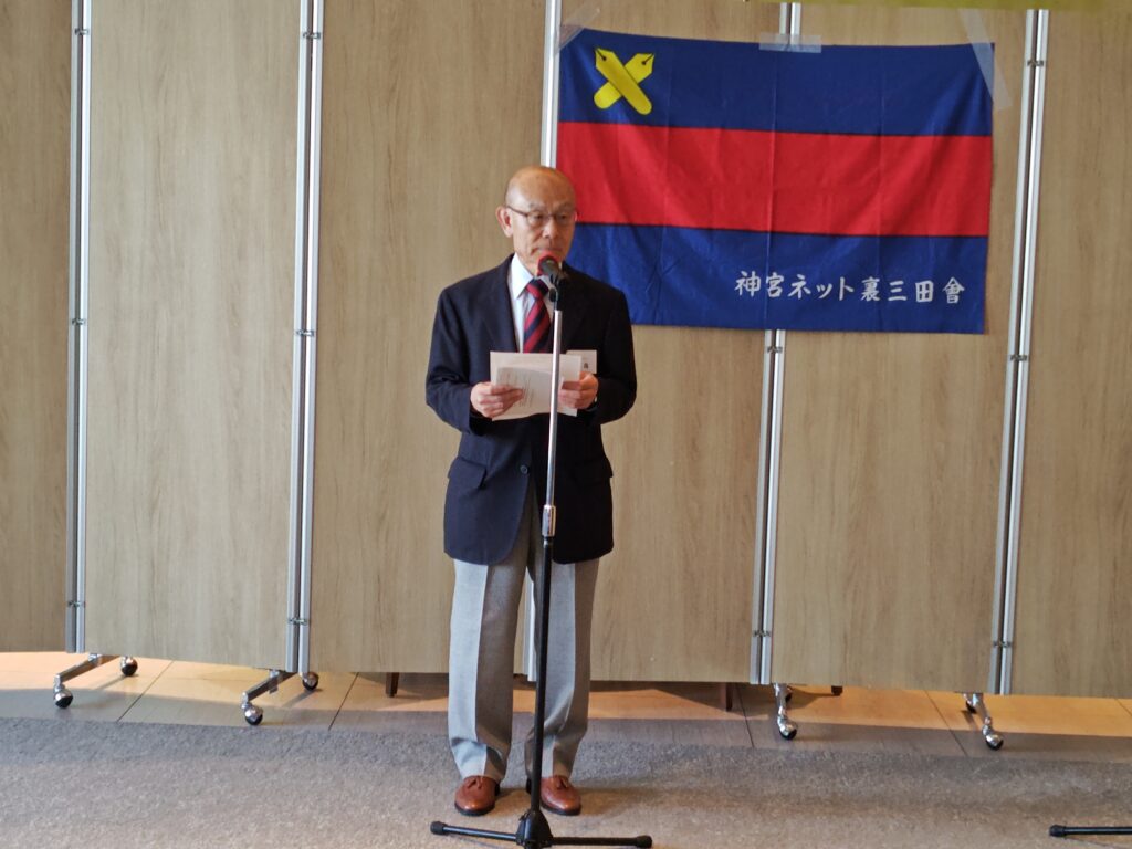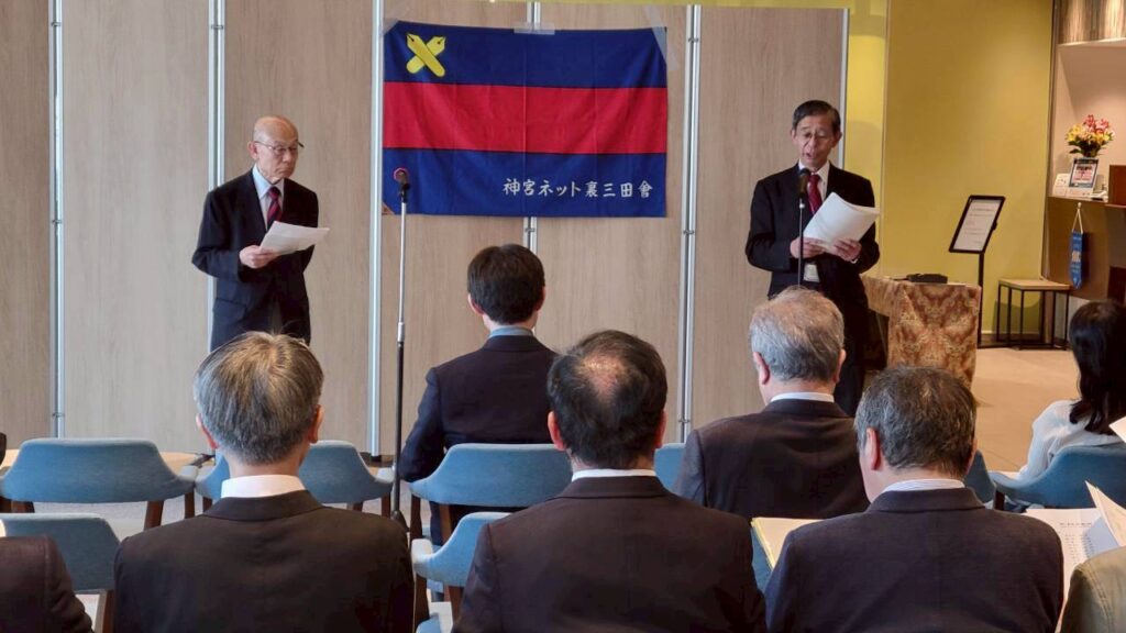 春季東京六大学野球リーグ戦が開幕し、開幕ゲームの対立大1回戦の試合後、日本青年館ホテルレストラン「イーストウインド」にて「令和8年度神宮ネット裏三田会総会」を会員27名の参加のもと開催致しましたので、内容につきご報告致します。
