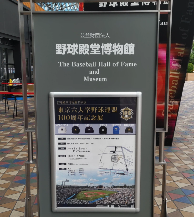 野球殿堂博物館にて東京六大学野球連盟100周年記念展が開催されているので見学してまいりました。