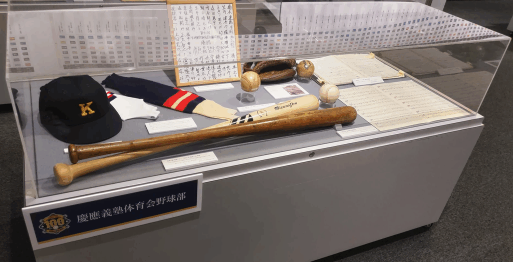記念展以外の展示物も含め、その日に見かけた慶應義塾野球部に関連する展示物を紹介していきたいと思います。文中の敬称は省略させていただきます、ご了承ください。