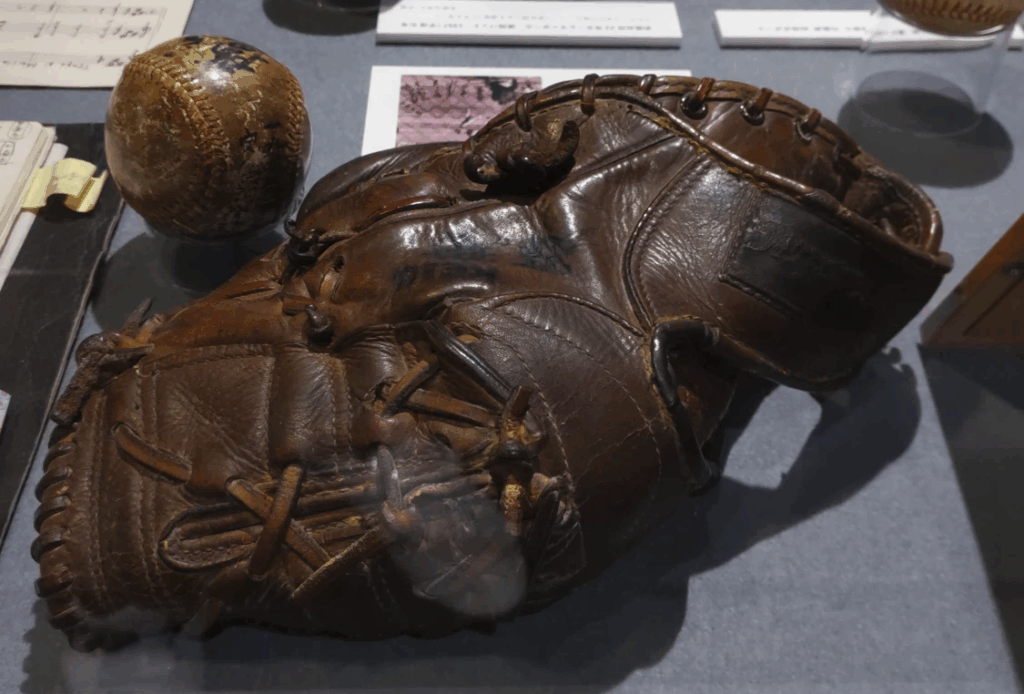 こちらは1964年5月17日、渡辺泰輔(慶應義塾→慶大)が立教大学を相手に六大学リーグ初となる完全試合を達成した際に使用していたグローブです。